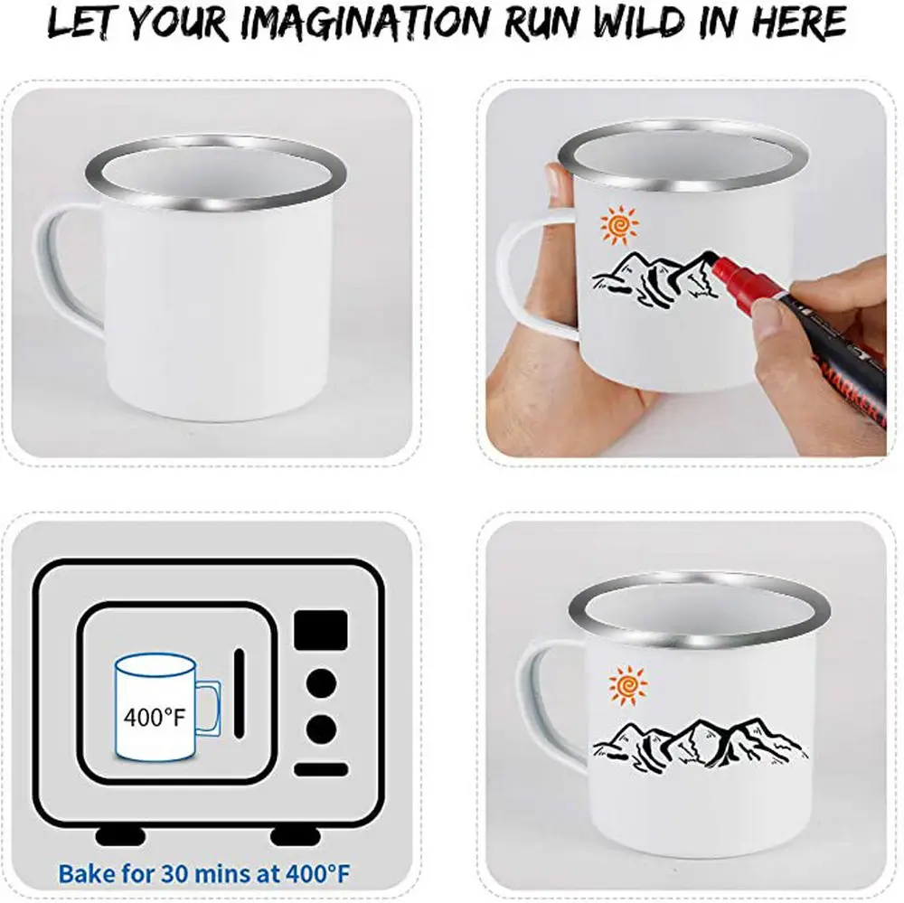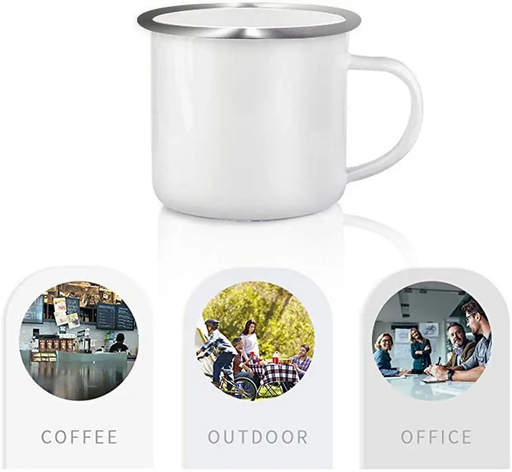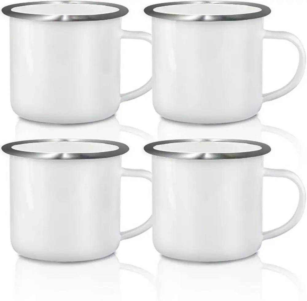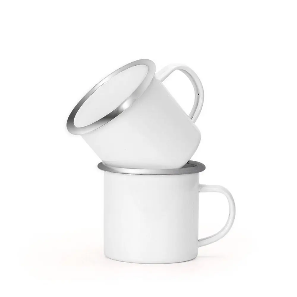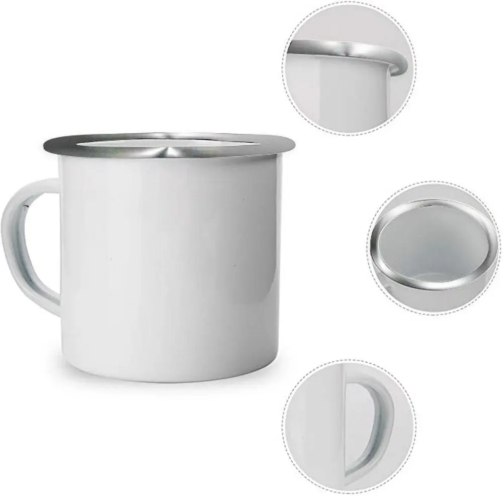 Sublimation Blank Stainless Steel Enamel Mugs with Silver Edge Small White Camping Coffee Tea Cup Free Shipping Personalized DIY